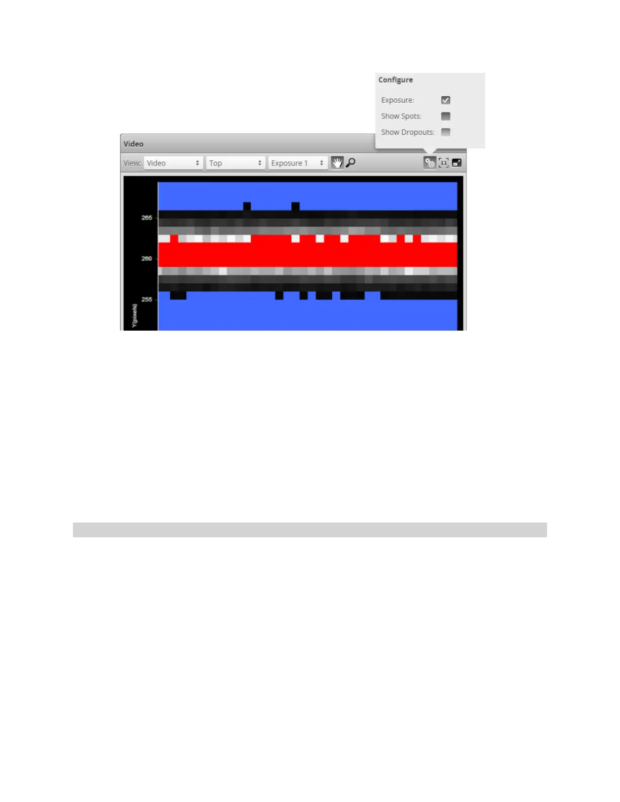 In the image below, the white and gray squares represent the laser line as it appears on the camera