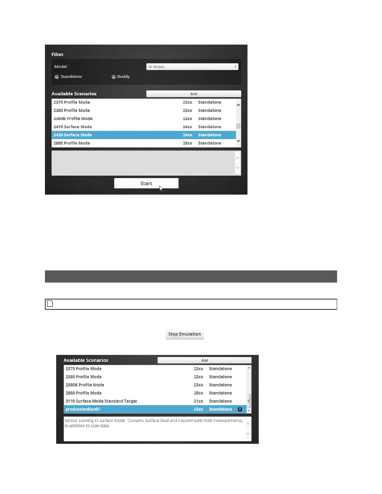 l Choose Standalone or Buddy to limit the scenarios to single-sensor or dual-/multi-sensor scenarios,