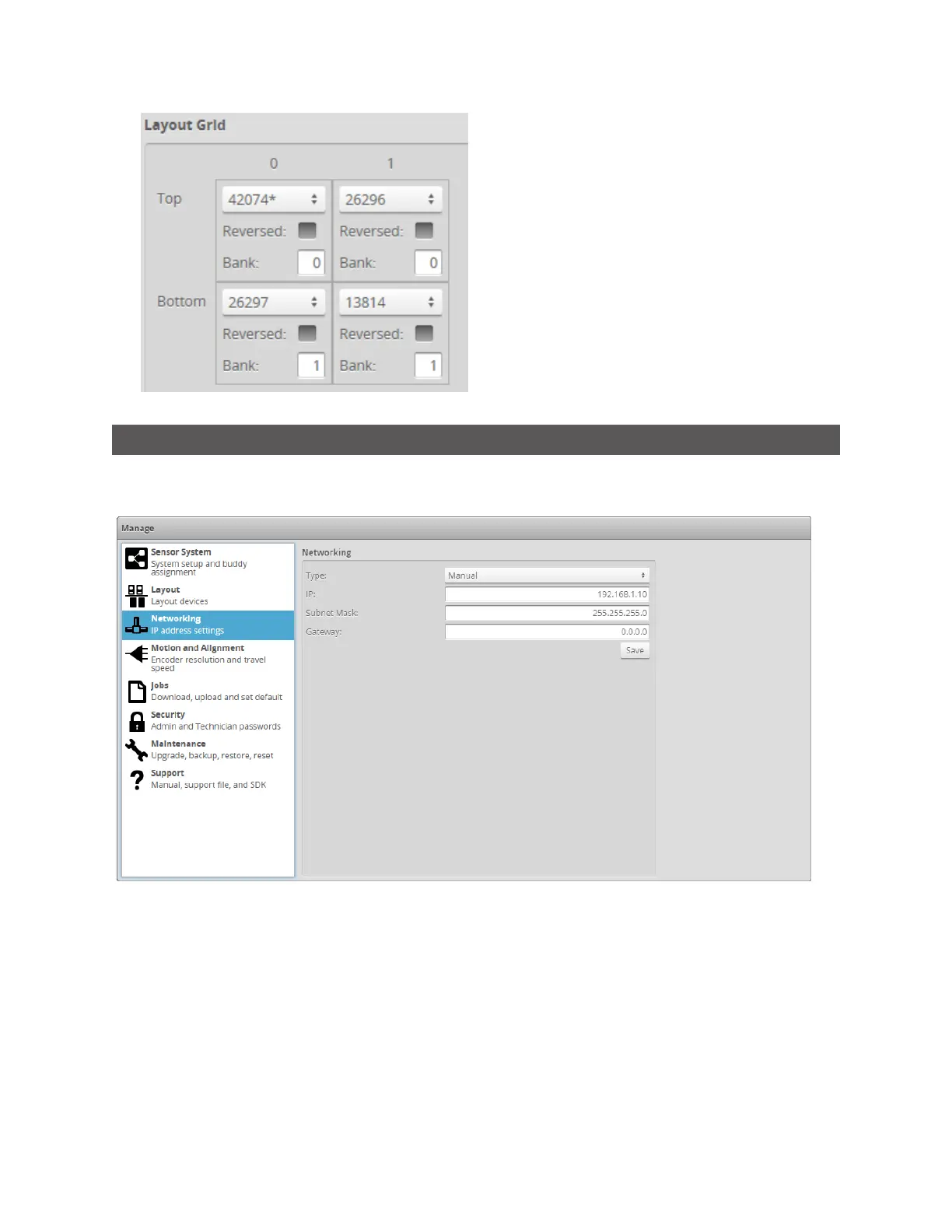 The Networking category on the Manage page provides network settings. Settings must be configured