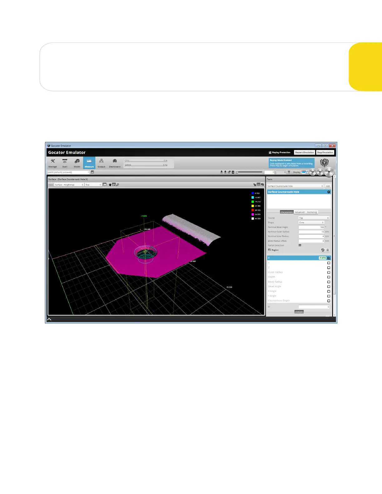 The Gocator emulator is a stand-alone application that lets you run a "virtual"sensor. In a virtual sensor,
