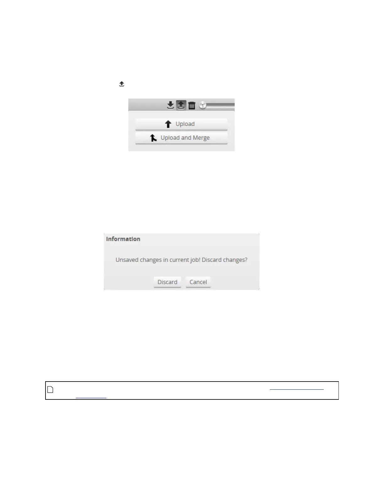 l Upload:Unloads the current job and creates a new unsaved and untitled job from the content of the