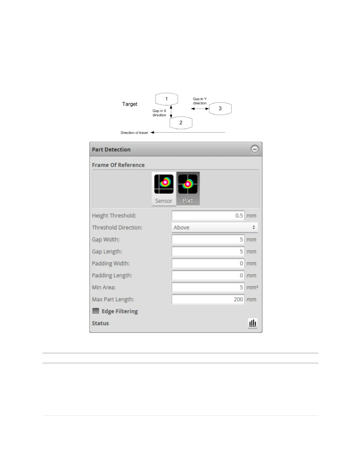 Part detection can be performed when Source in the Trigger panel is set to Time or Encoder. To use