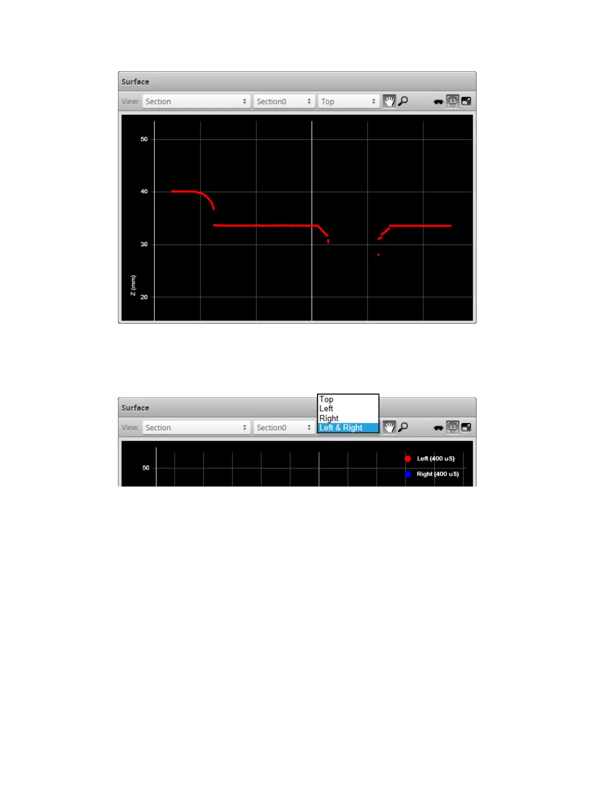 In a dual-sensor system, profiles from individual sensors or from a combined view can be displayed.