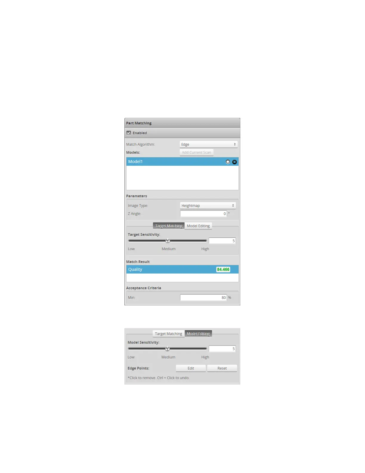 3. Adjust the model (edge detection algorithm sensitivity and selective removal of edge points).