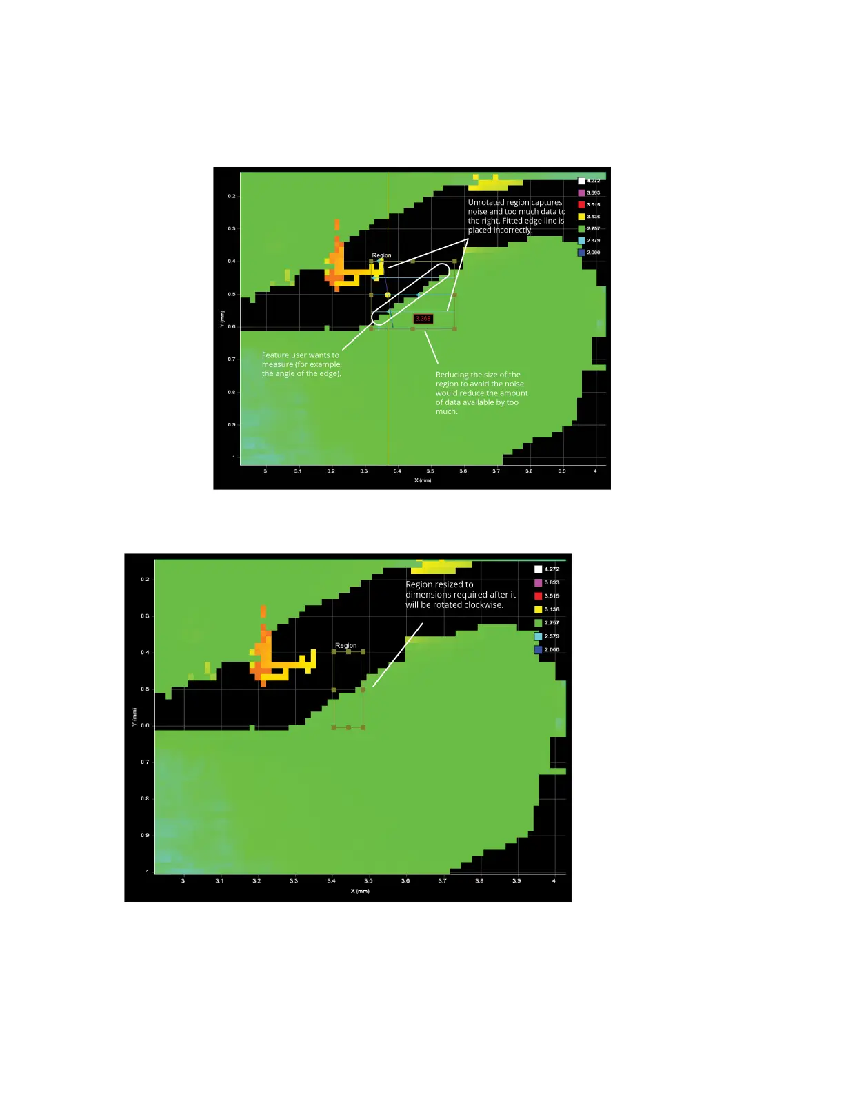 accommodate features that are on an angle on a target. By rotating the measurement region, data not