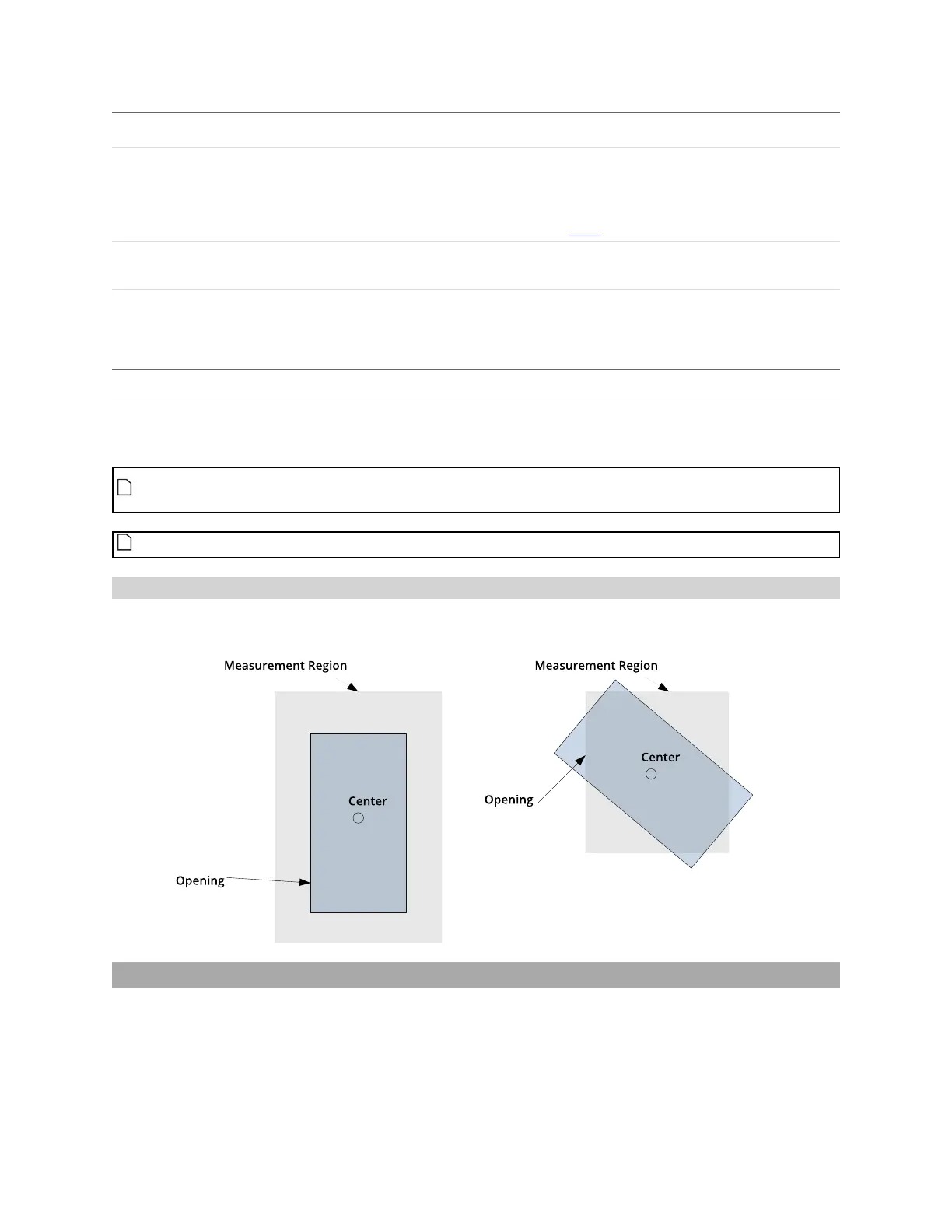 The center and the two sides and ends of the opening must be within the measurement region, even if