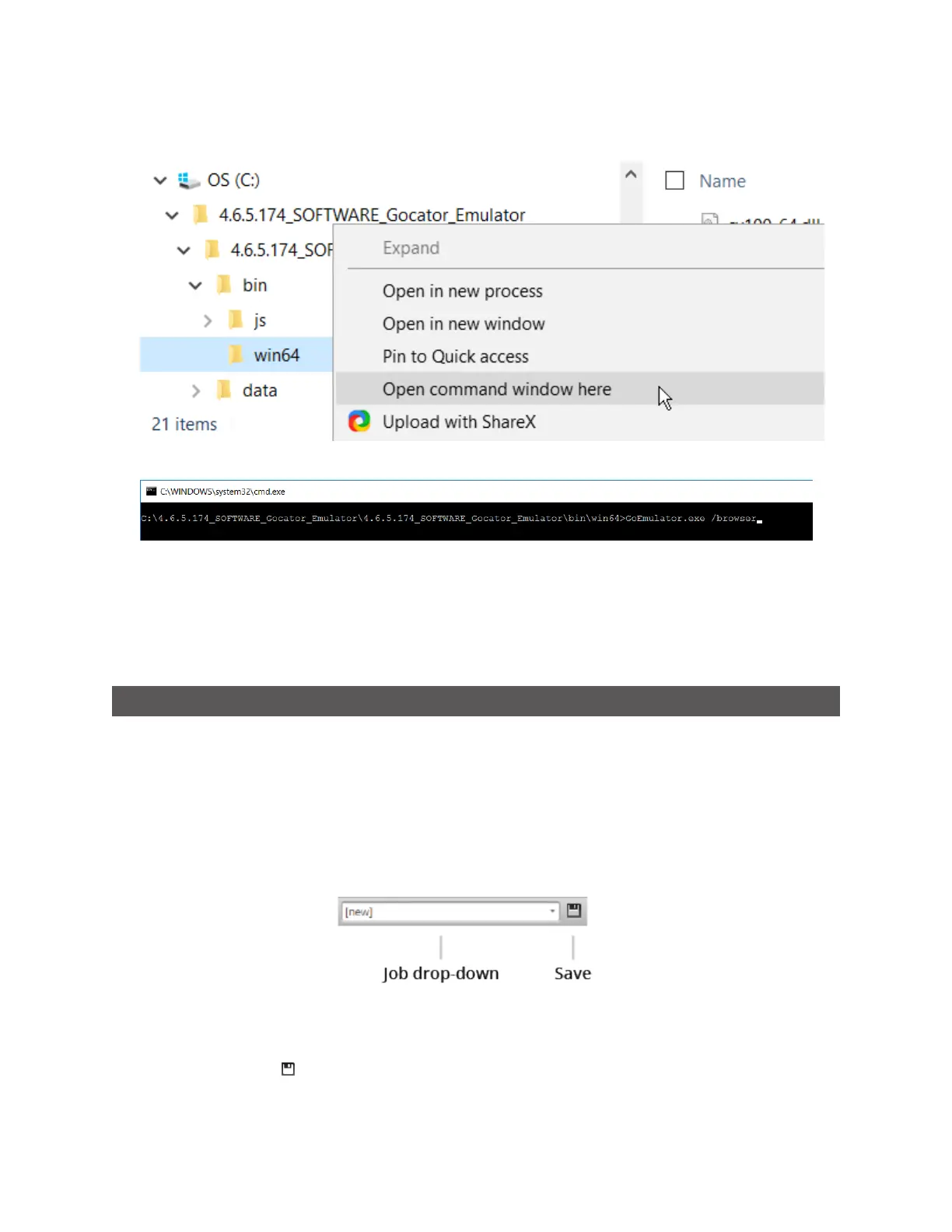2. Press and hold Shift, right-click the win64 folder containing the emulator, and choose Open command