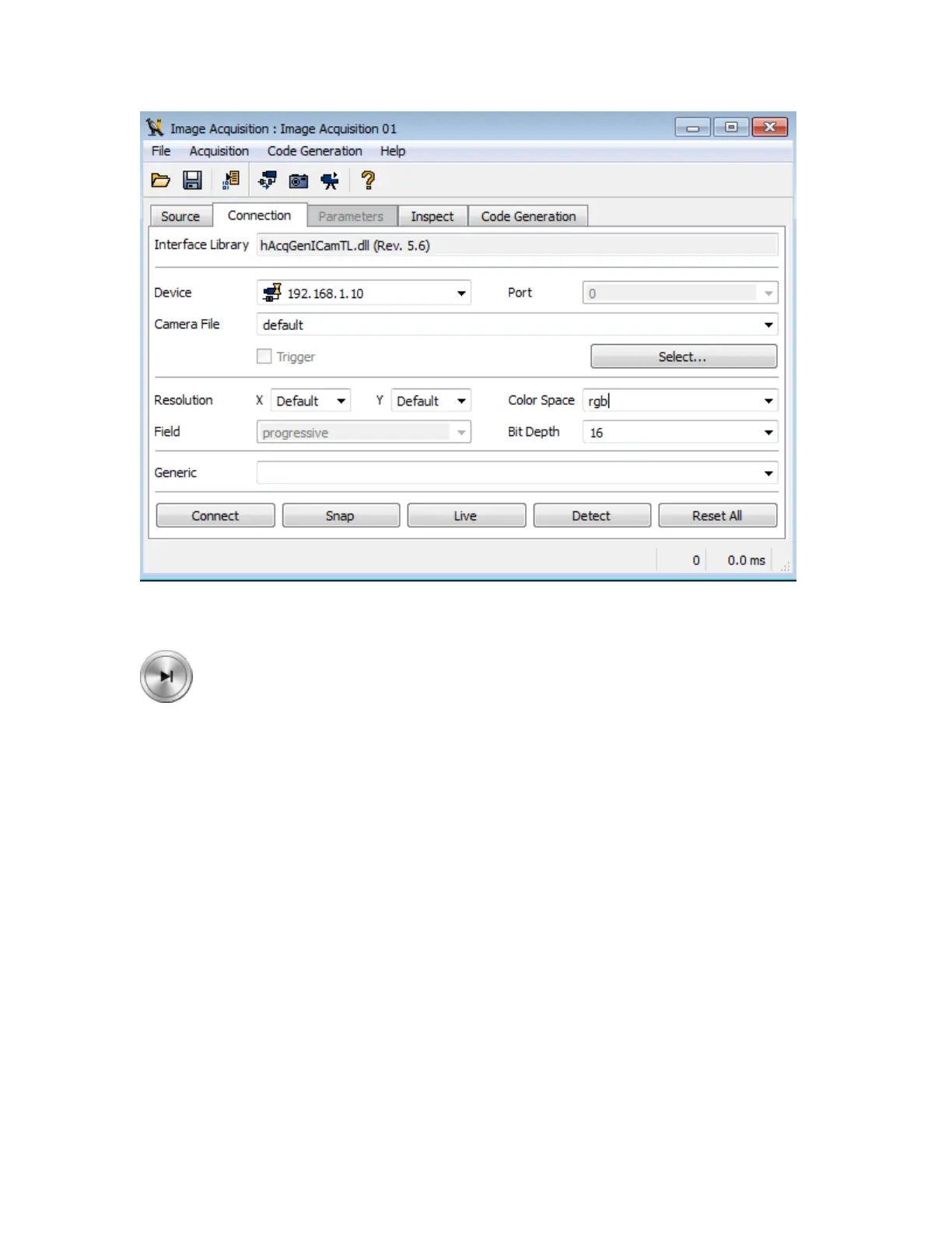 13. In the Connection tab, set Color Space to RGB and Bit Depth to 16.