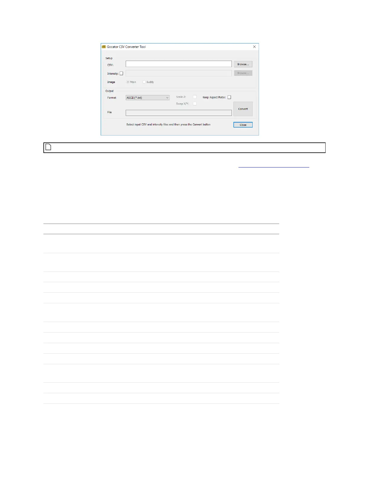 After downloading the tool package, unzip the file and run the Gocator CSV Converter tool