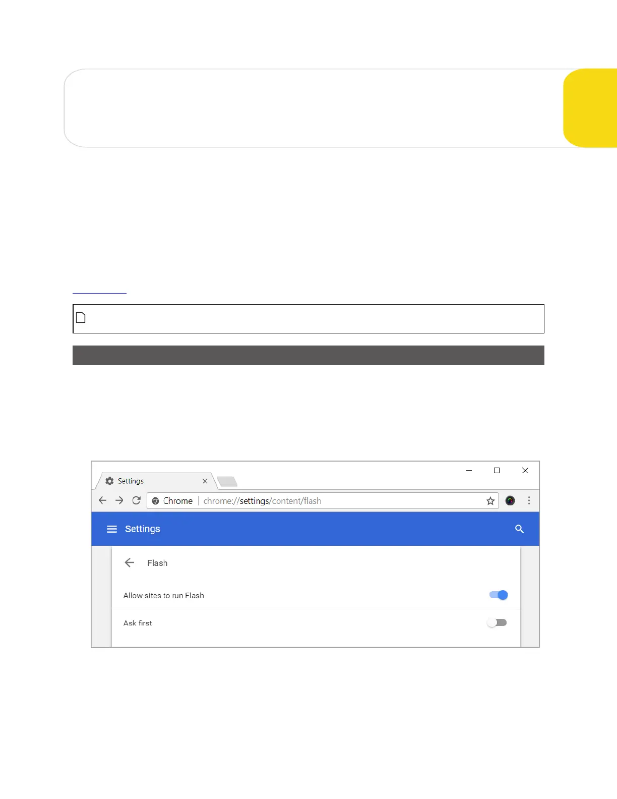 2. In the settings page that displays, enable Allow sites to run Flash and disable Ask first.
