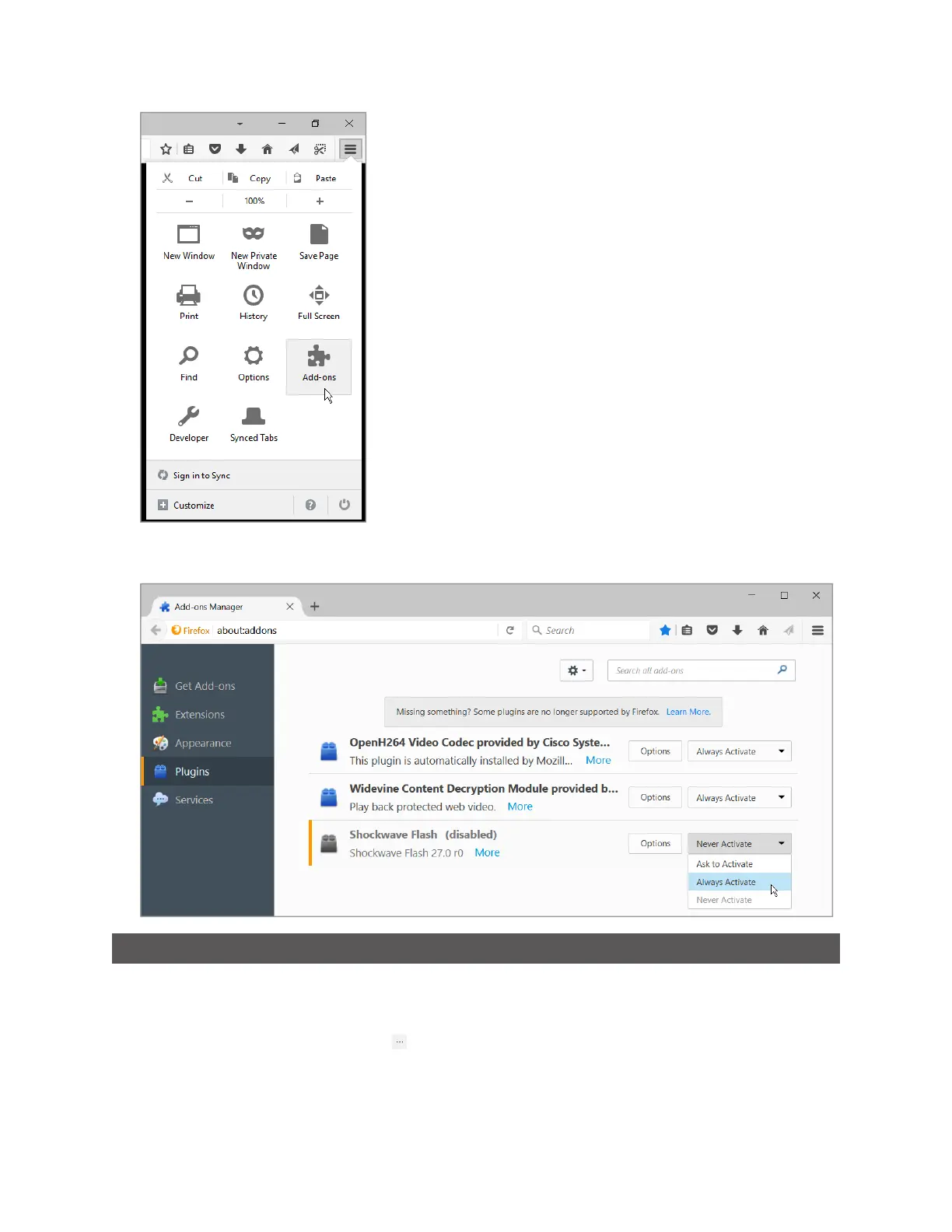 2. In the Add-ons Manager, click the Plugins category to the left and choose Always Activate next to