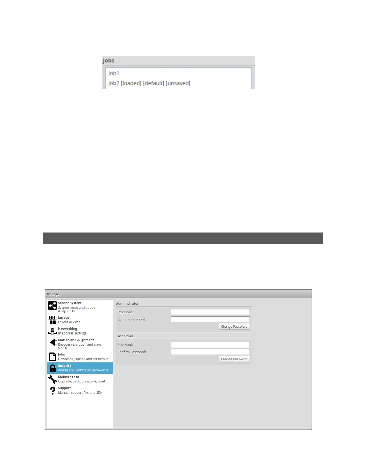 You can prevent unauthorized access to a Gocator sensor by setting passwords. Each sensor has two