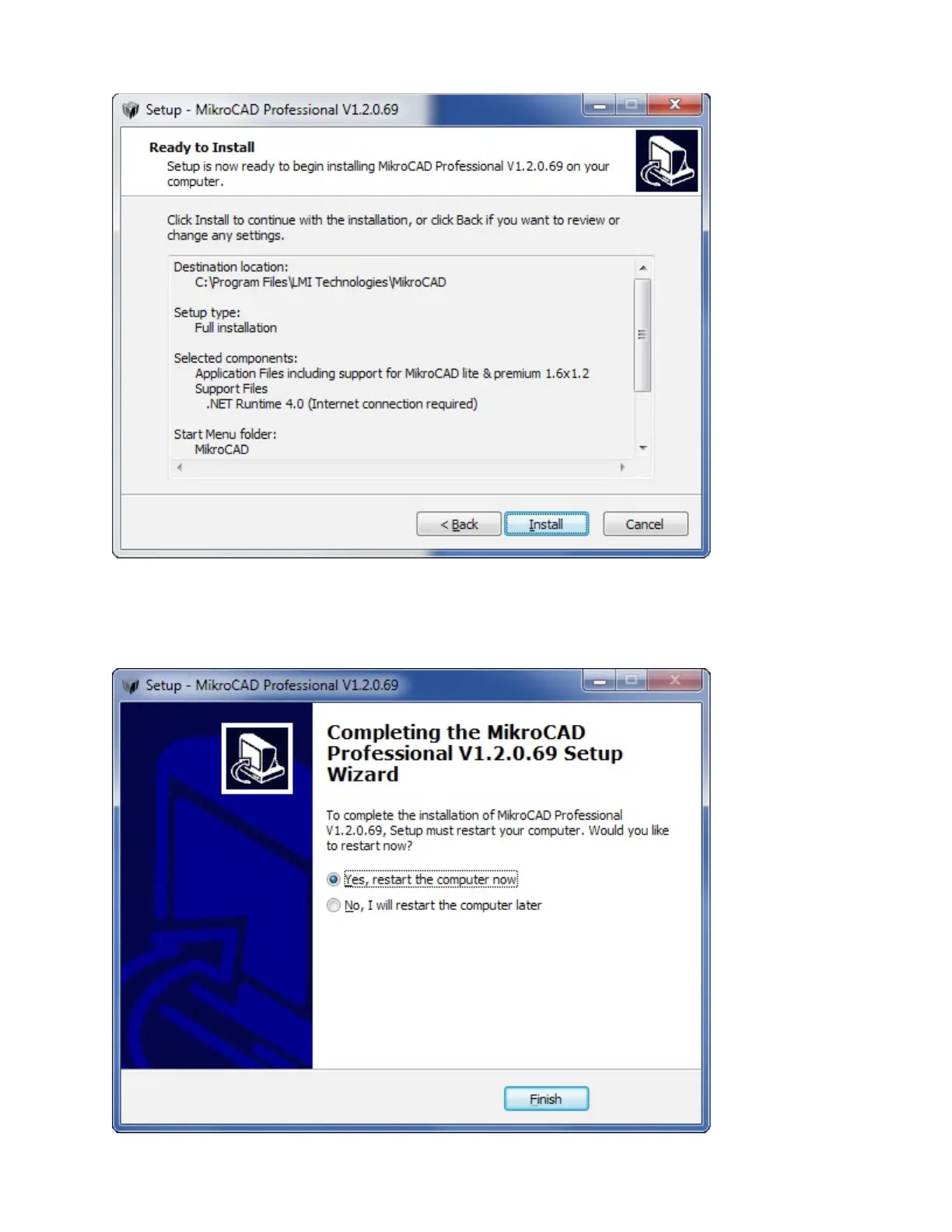 The installer installs the MikroCAD software.
