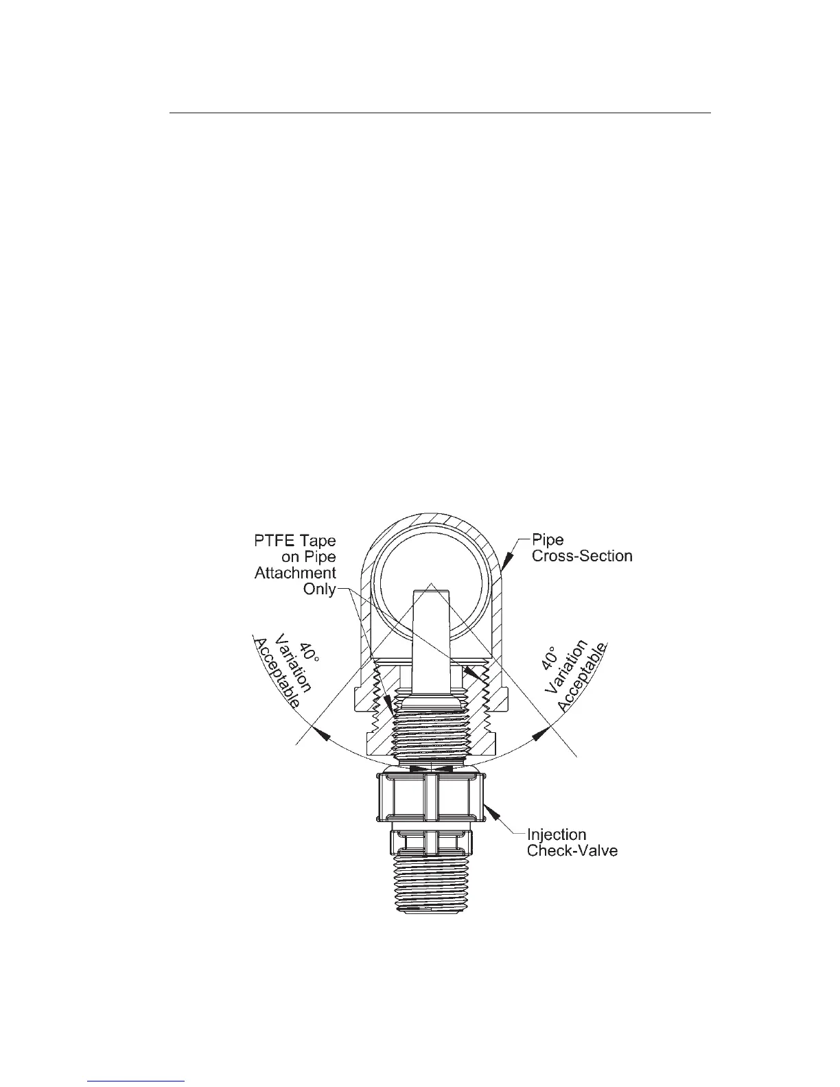 1. The Injection Check Valve prevents backow from a treated line. Install the
