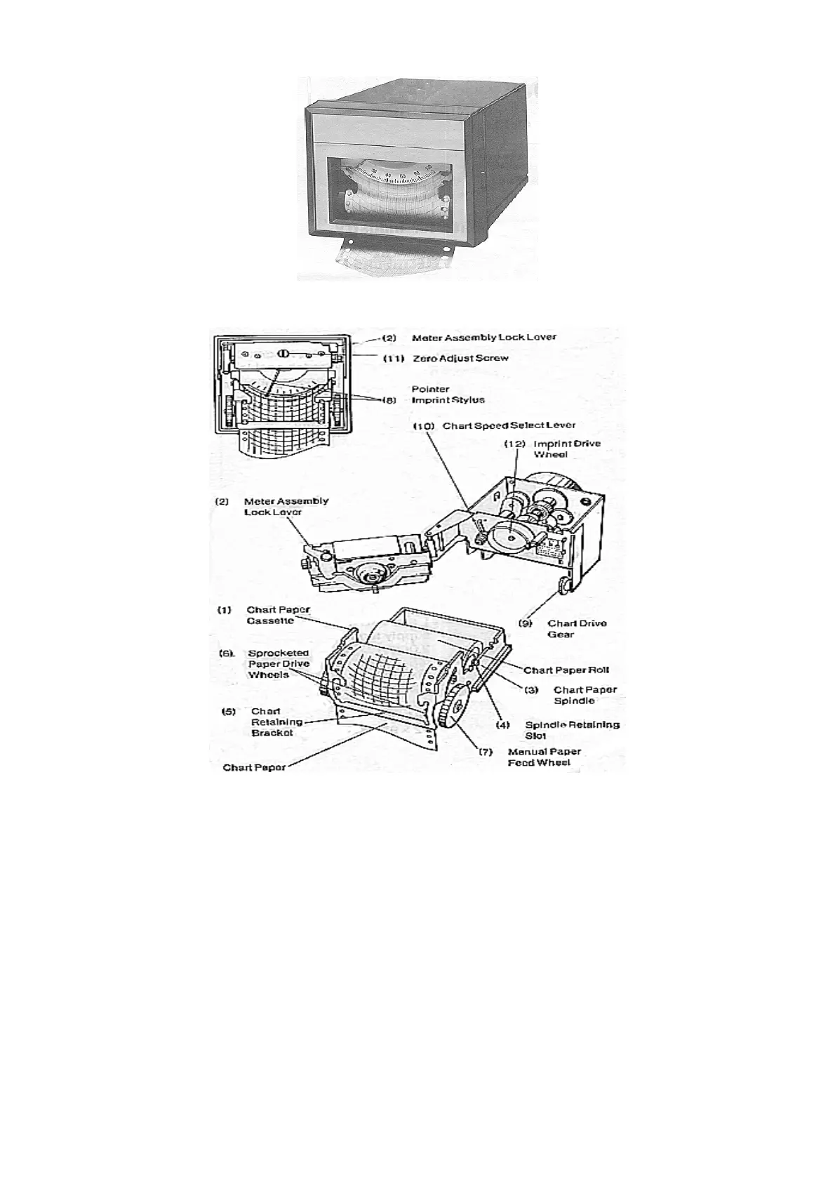 released, or the imprint drive wheel (12) can be manually rotated. The chart paper can