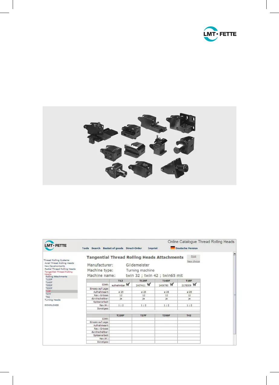 tions with Fette tangential rolling heads on different machine tools. This database is