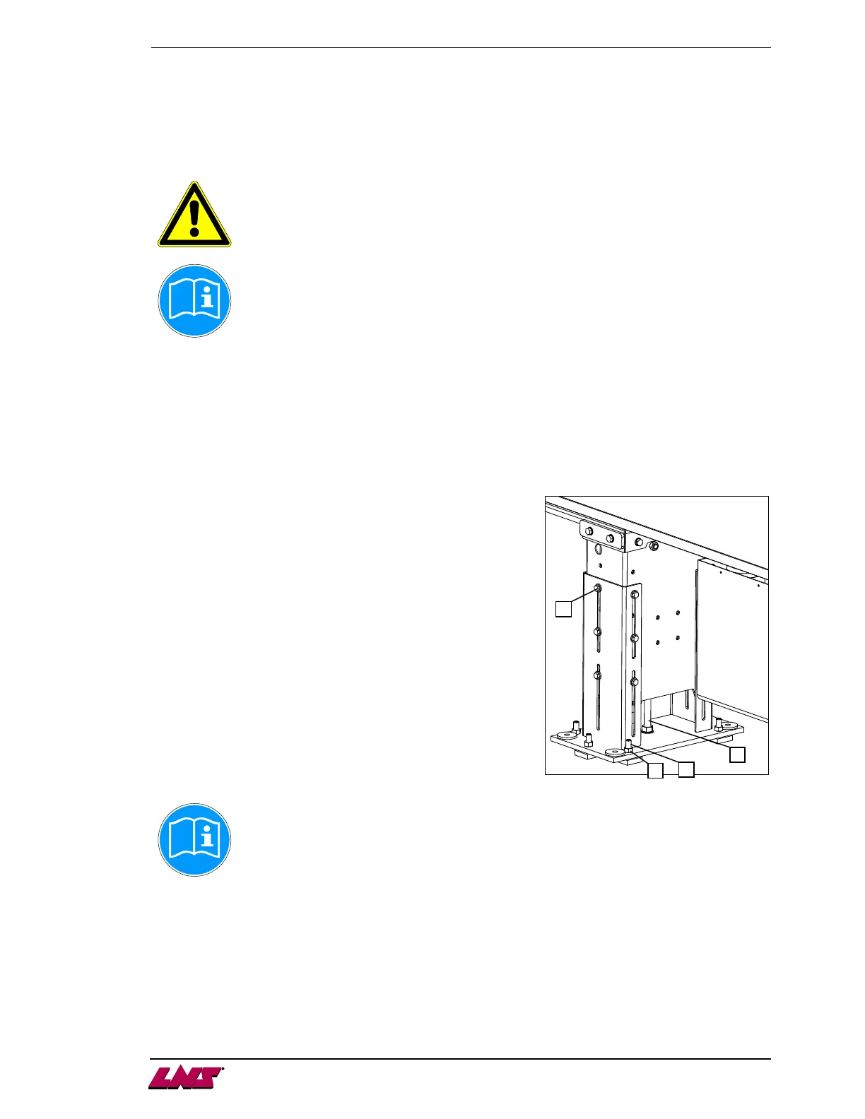 The lock nuts of the leveling screws should only be tightened after the bar feeder is