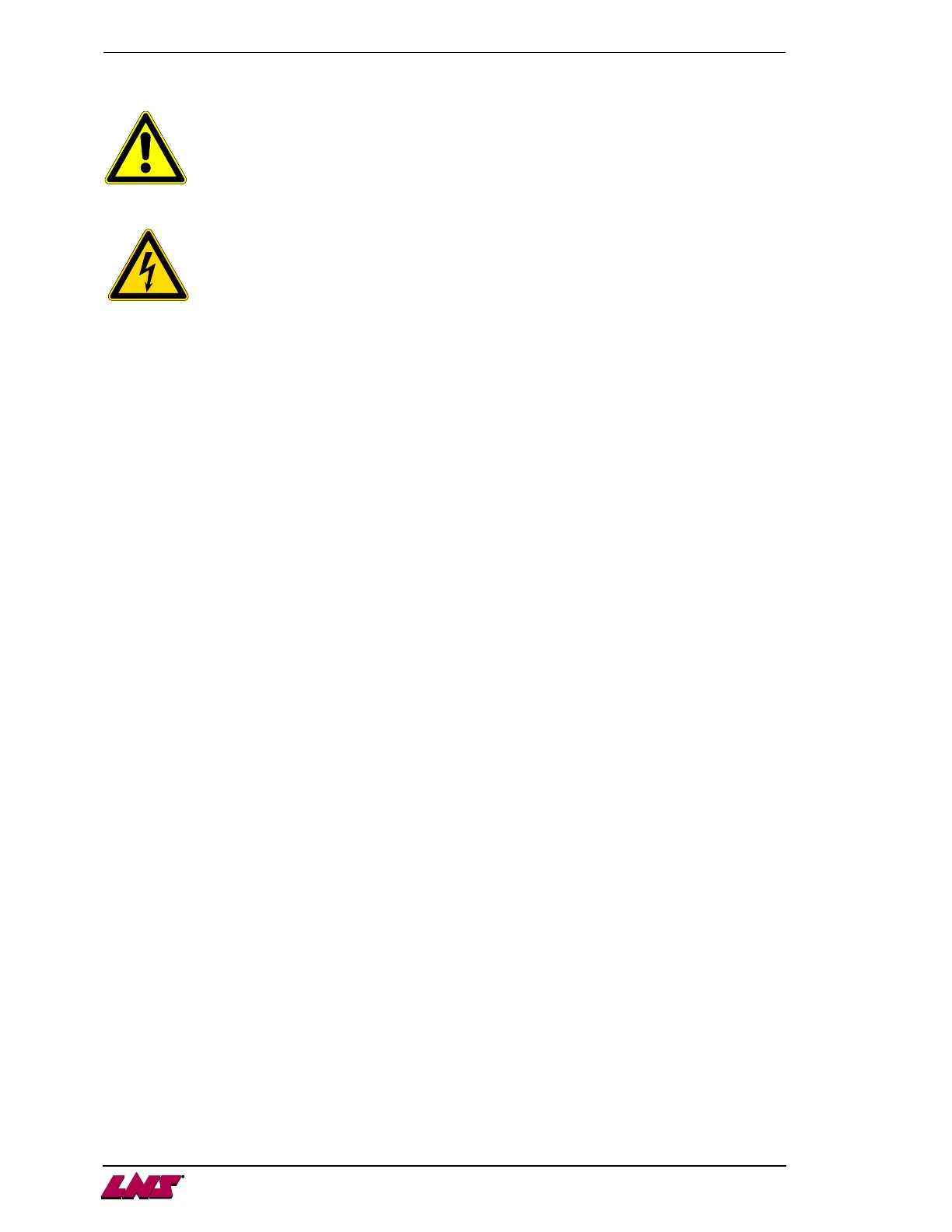 of electrocution. In case of possible electrical malfunctions, it is advisable to contact LNS