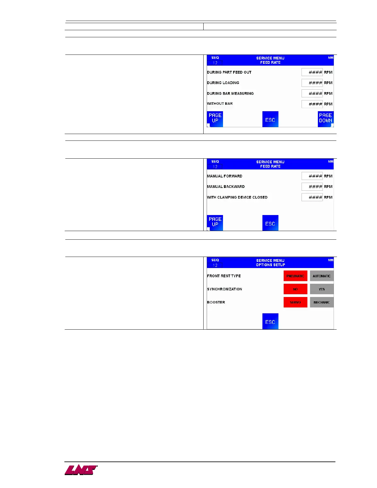 LNS Alpha 538 - Service Parameters: Feed Rate and Options