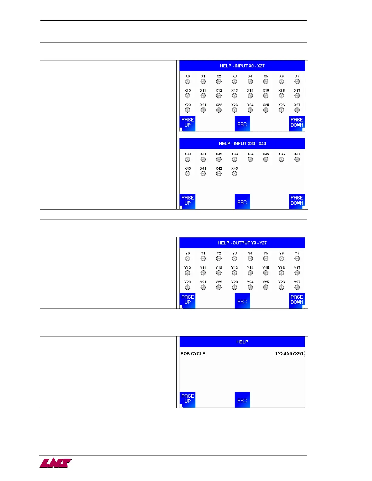LNS Alpha 538 - Help: Input, Output, and Cycle Status
