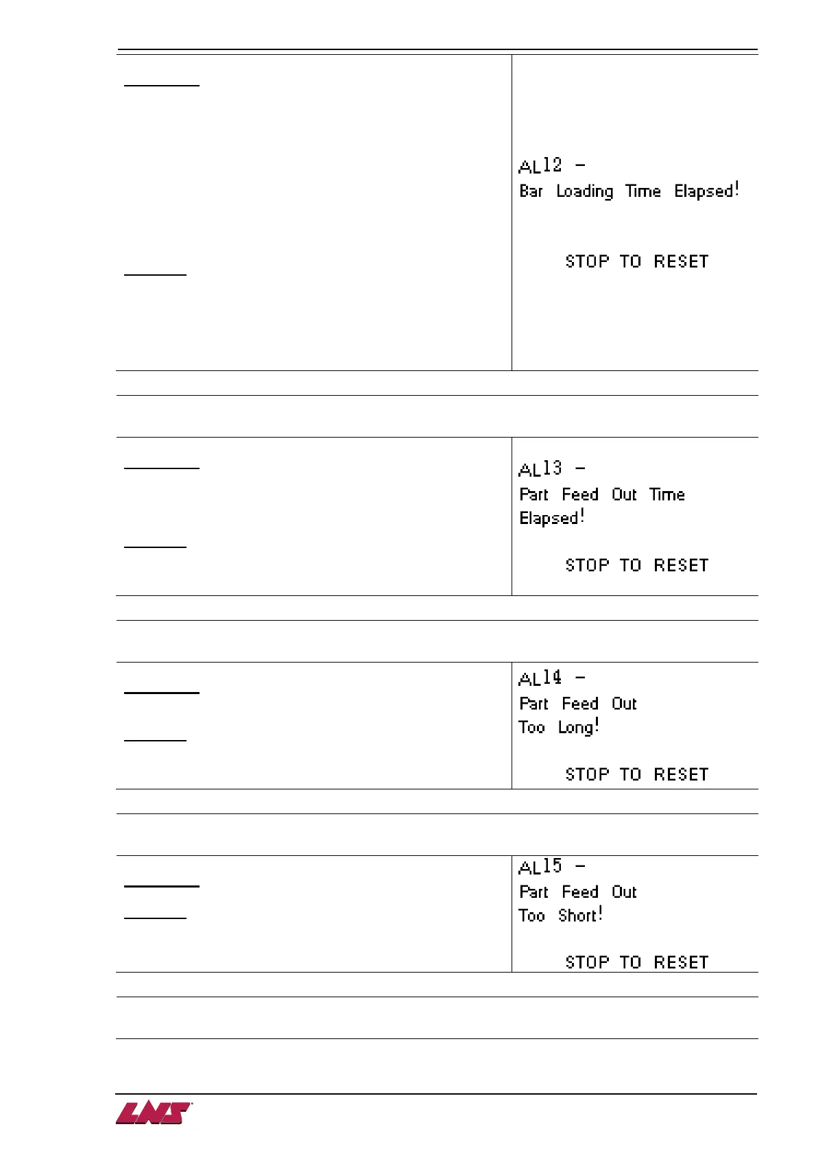 AL13: Part feed out time elapsed!