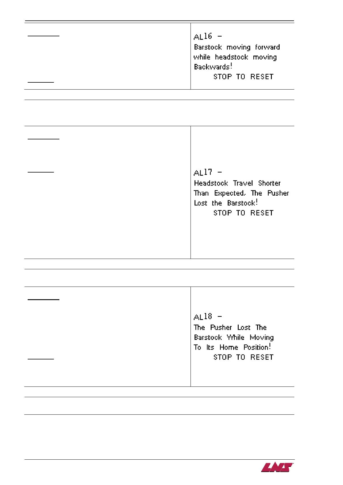 AL17: Headstock travel shorter than expected, the pusher lost the