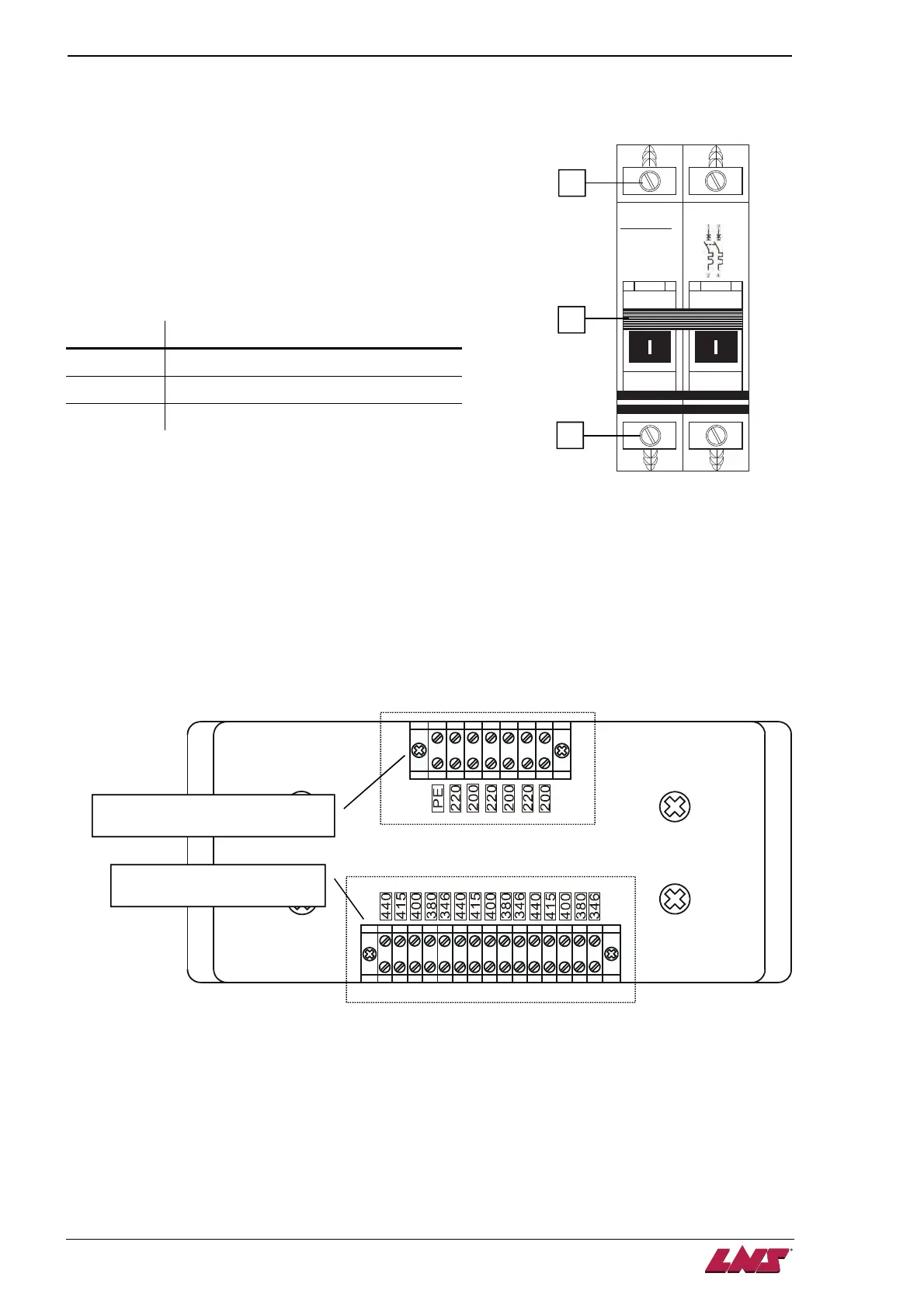 to the supplied power (346V AC to 440V AC, see drawing below).