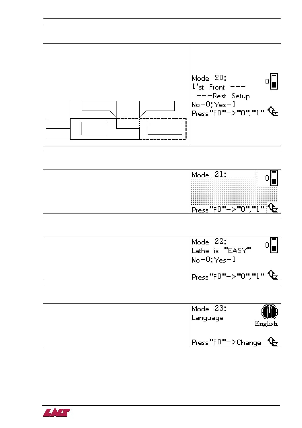 Lathe type setup 3 of 3 (refer to MODE 21, 22 for related setup)