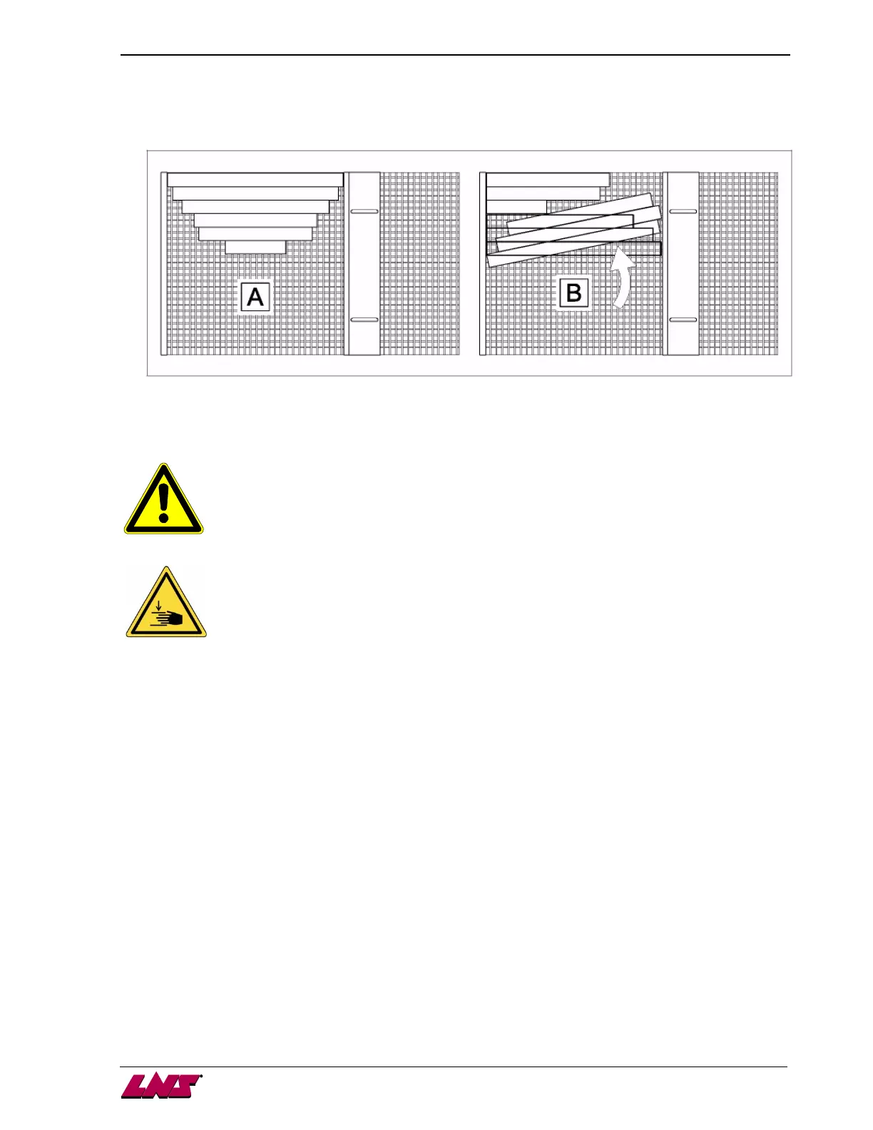 Manipulate with precaution the bars to be loaded to avoid crushing risk for fingers/hands.