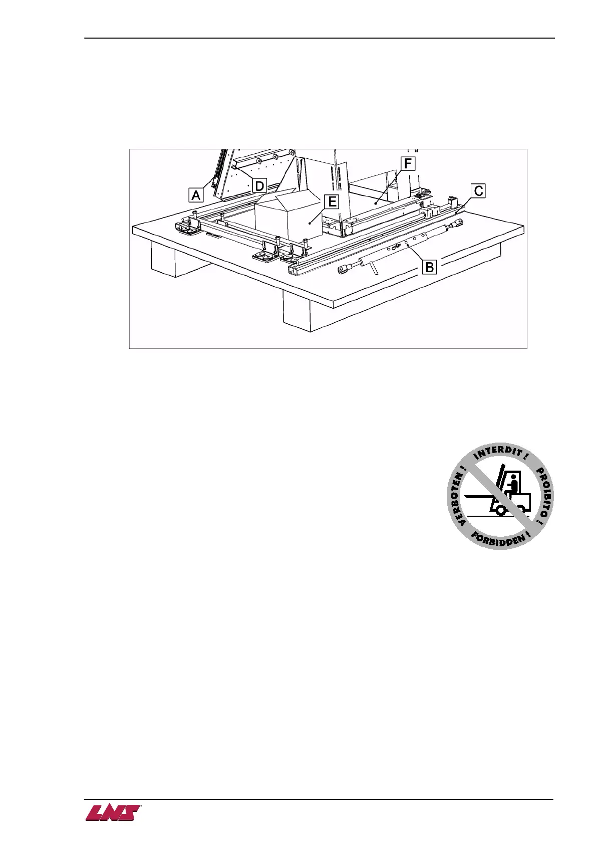 • The bar feed system is held on the pallet by bolts and nuts (F).