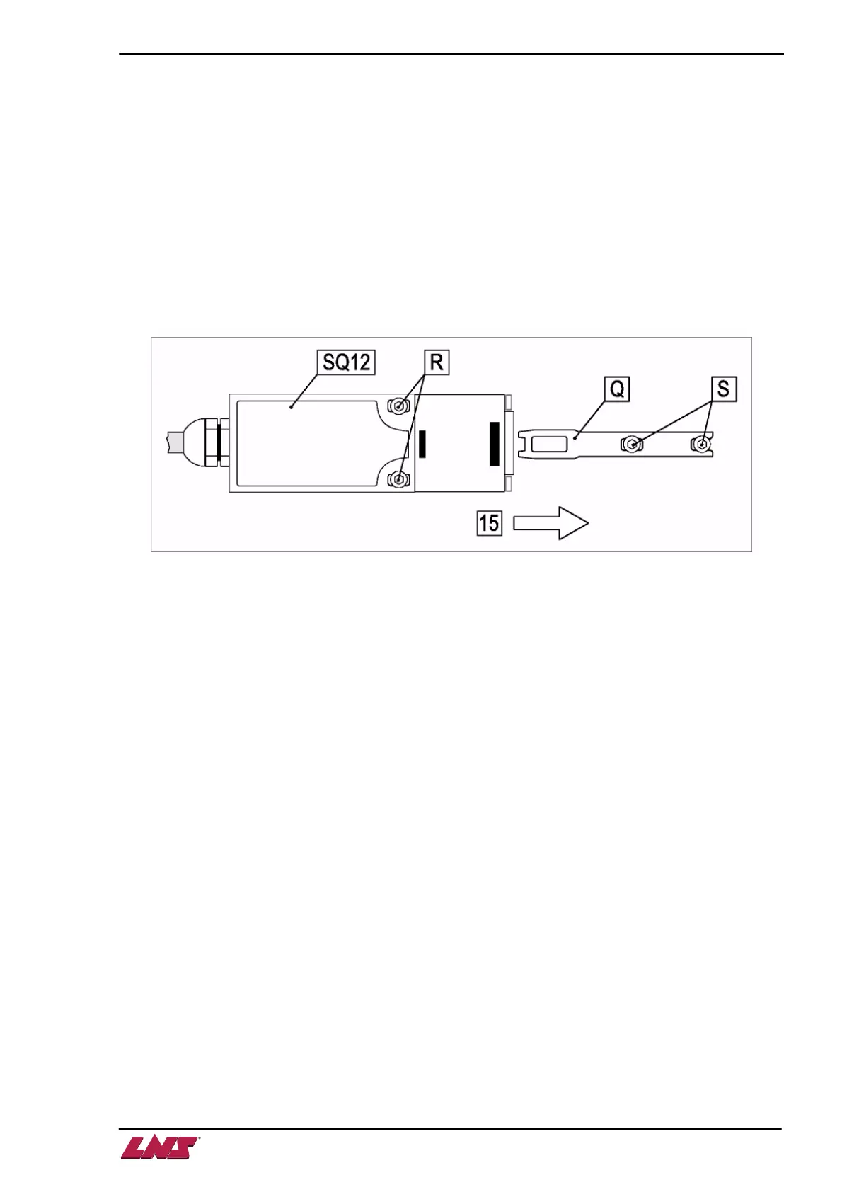15. Introduce the key (Q) located at the front of the rail of the barfeeder in the safety switch, then fix the