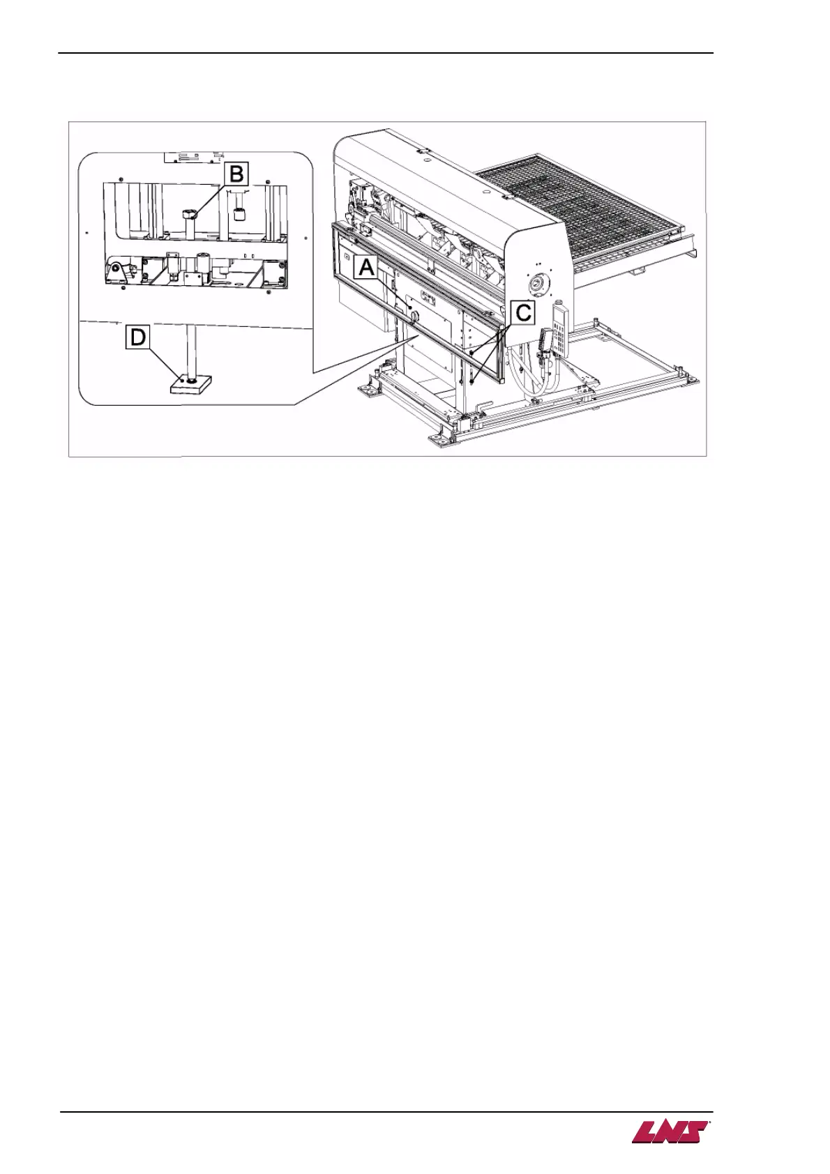 • Adjust the height of the bar feed system by tightening or loosening the central screw (B).