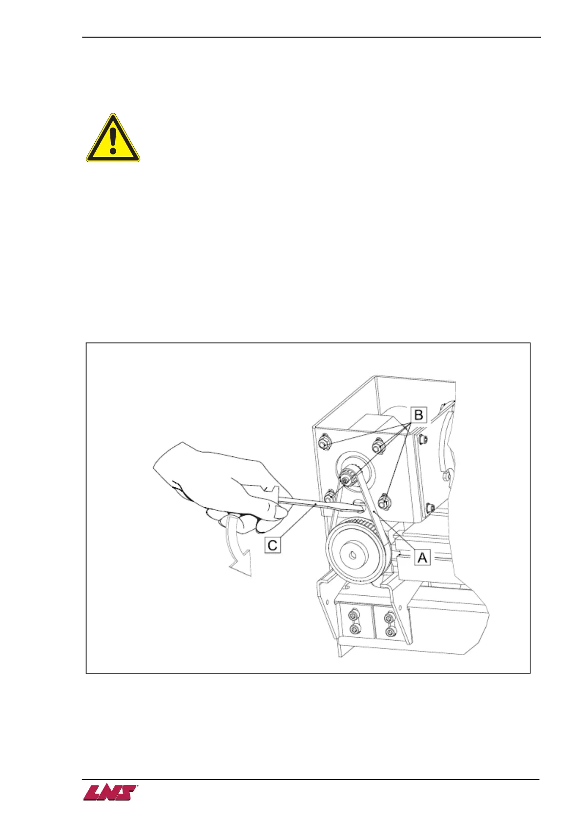Should the tension be adjusted, make sure that while adjusting the belt remains under
