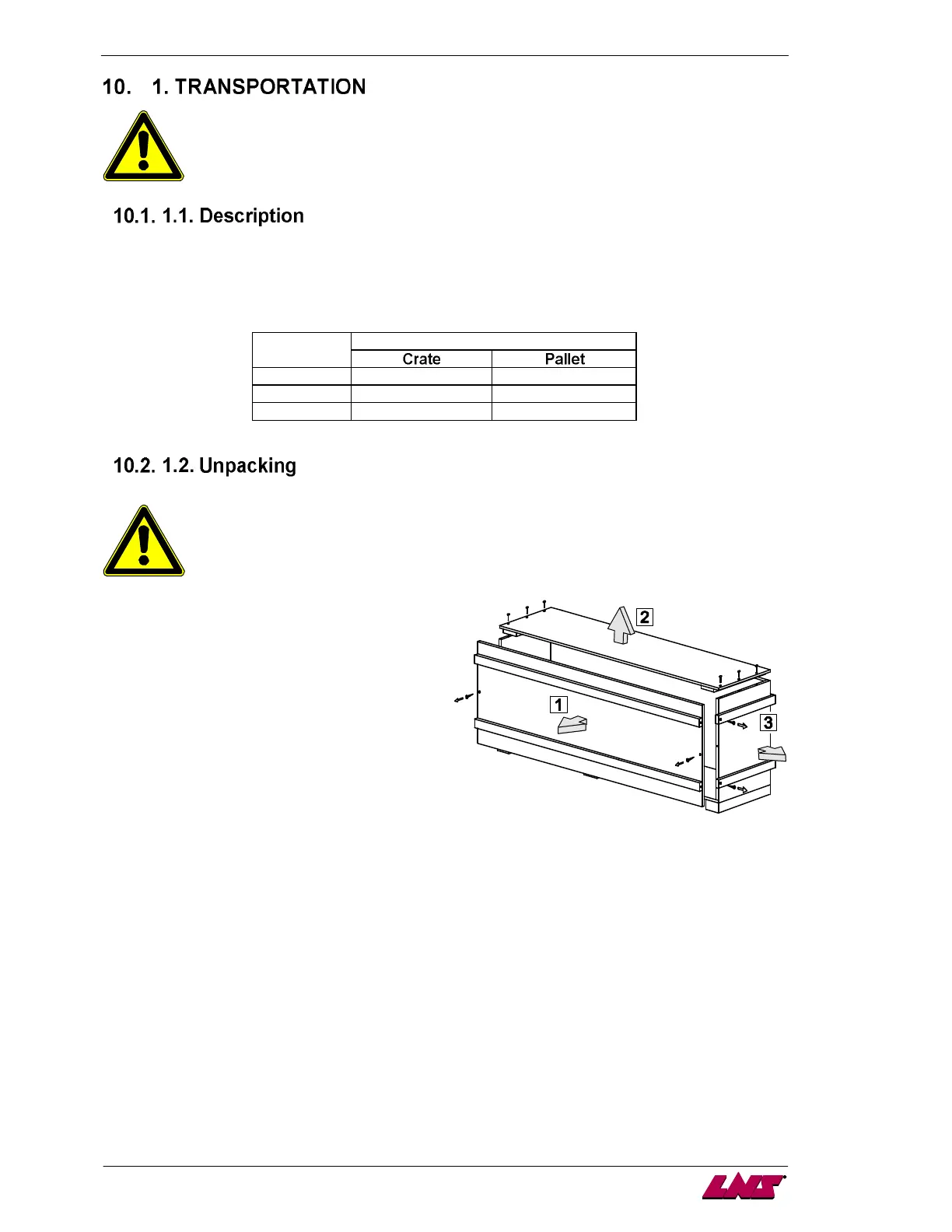 of packaging, the uncrating and lifting instructions recommended by LNS must be observed in order to