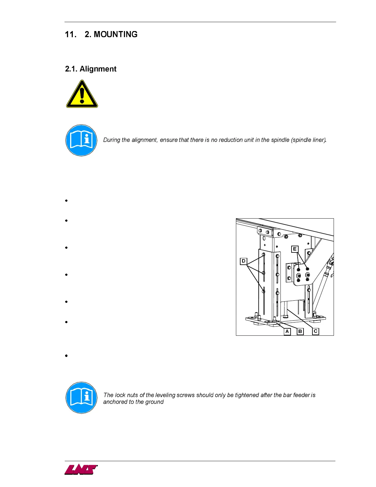 alignment tools, contact LNS or its local representative so they may take care of the bar feeder