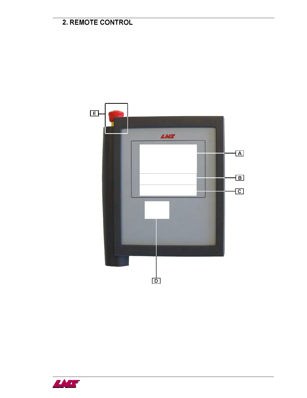 The remote control has five distinct segments, namely: display (A), function keys (B), left/right/up/down