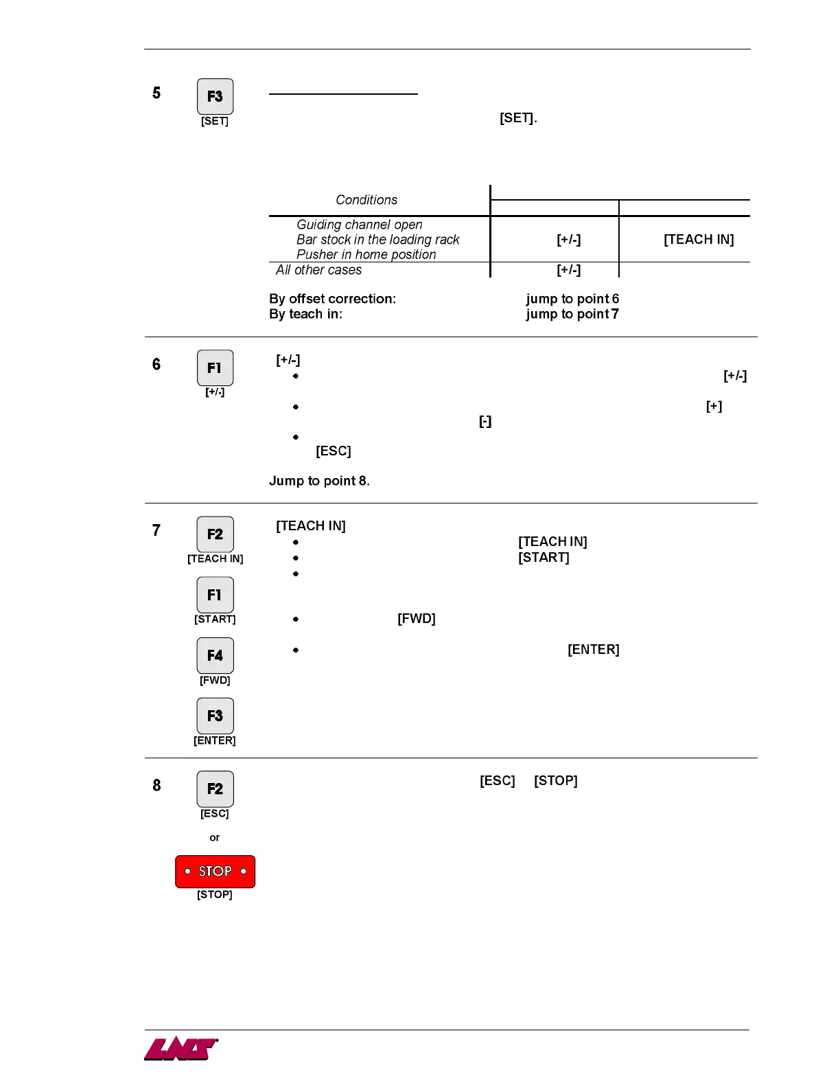 Press the key and advance the bar stock to the desired position (see