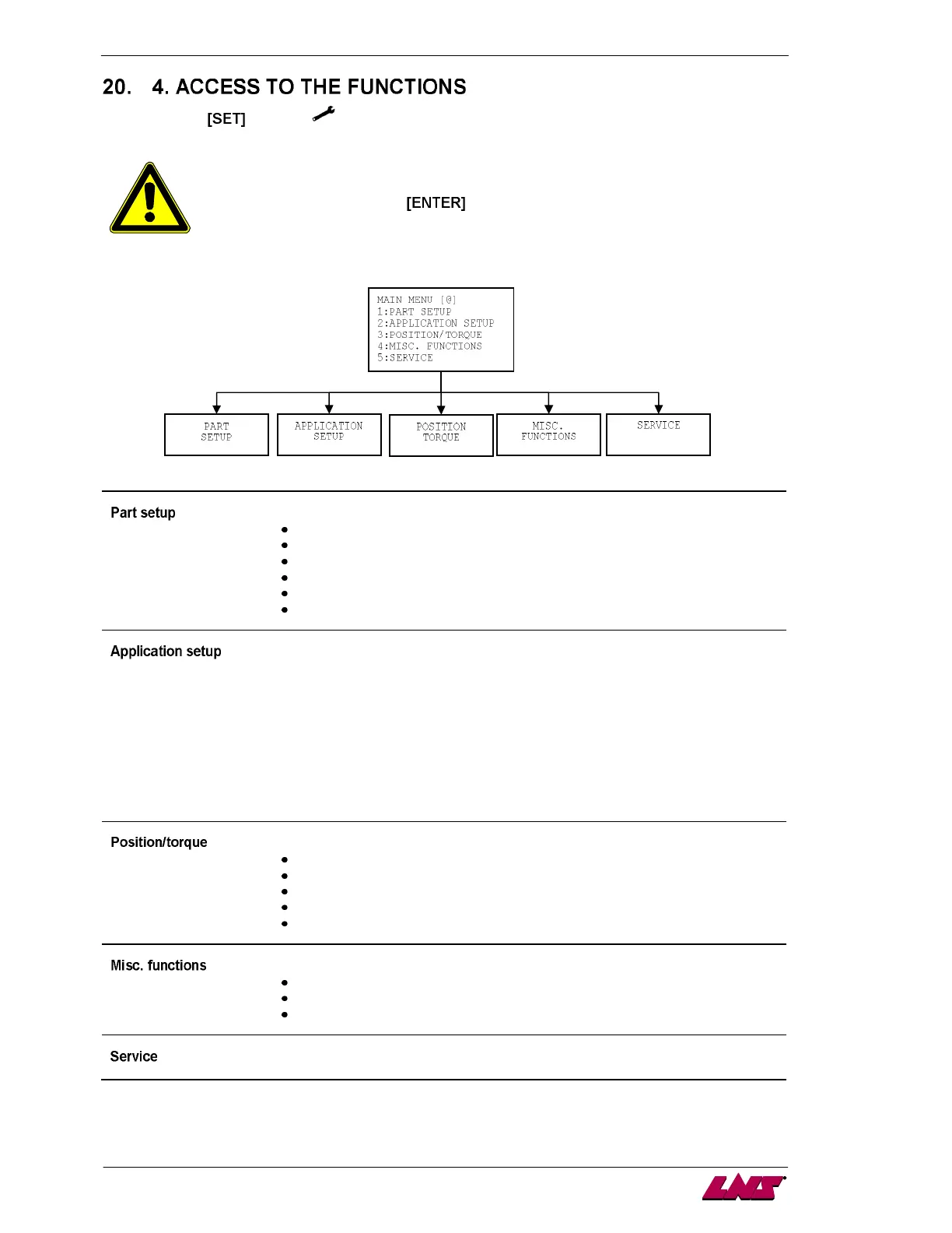 By pressing the key (icon ), it is possible to access the setup functions, no matter what cycle