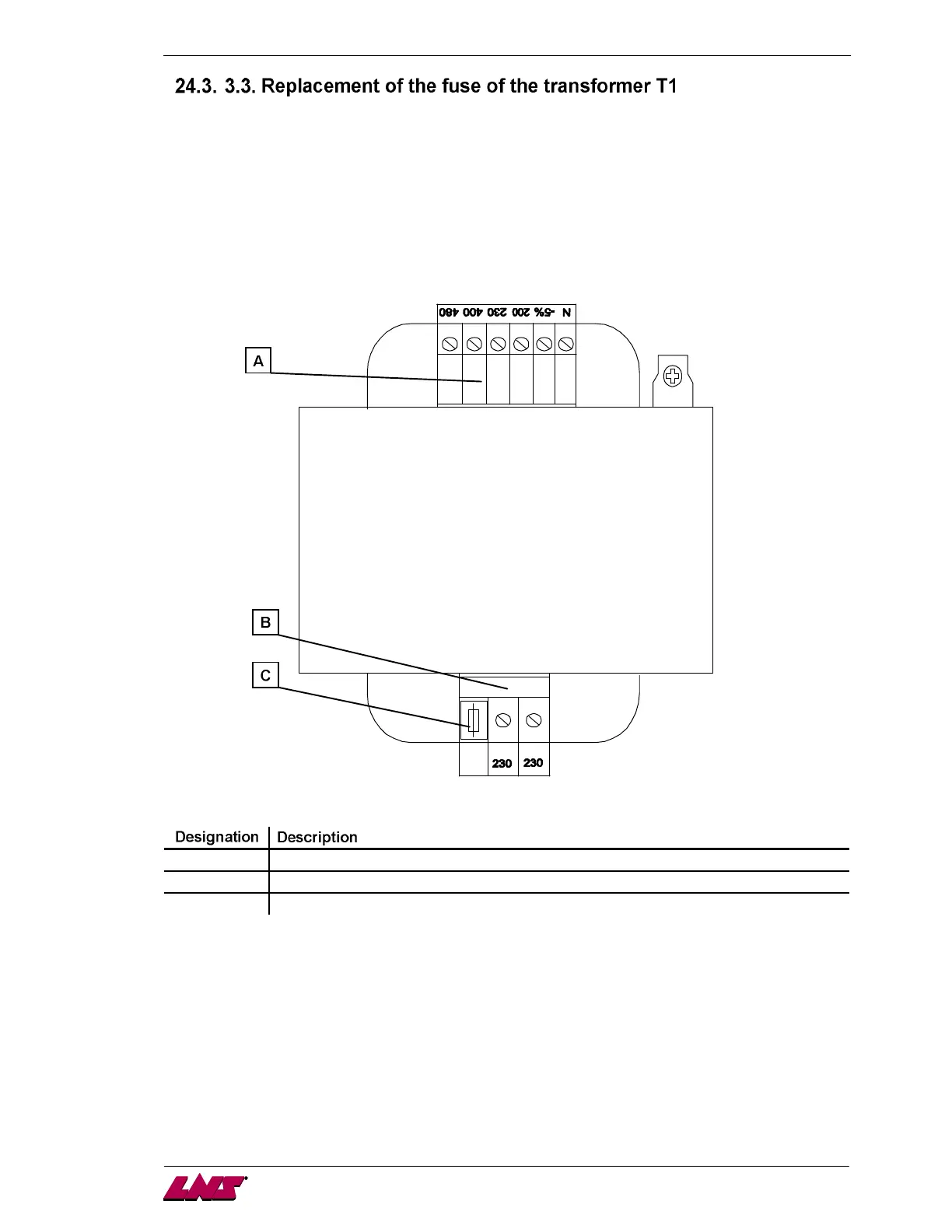 transformer T2 output is protected by a fuse installed in a support in the electrical cabinet.