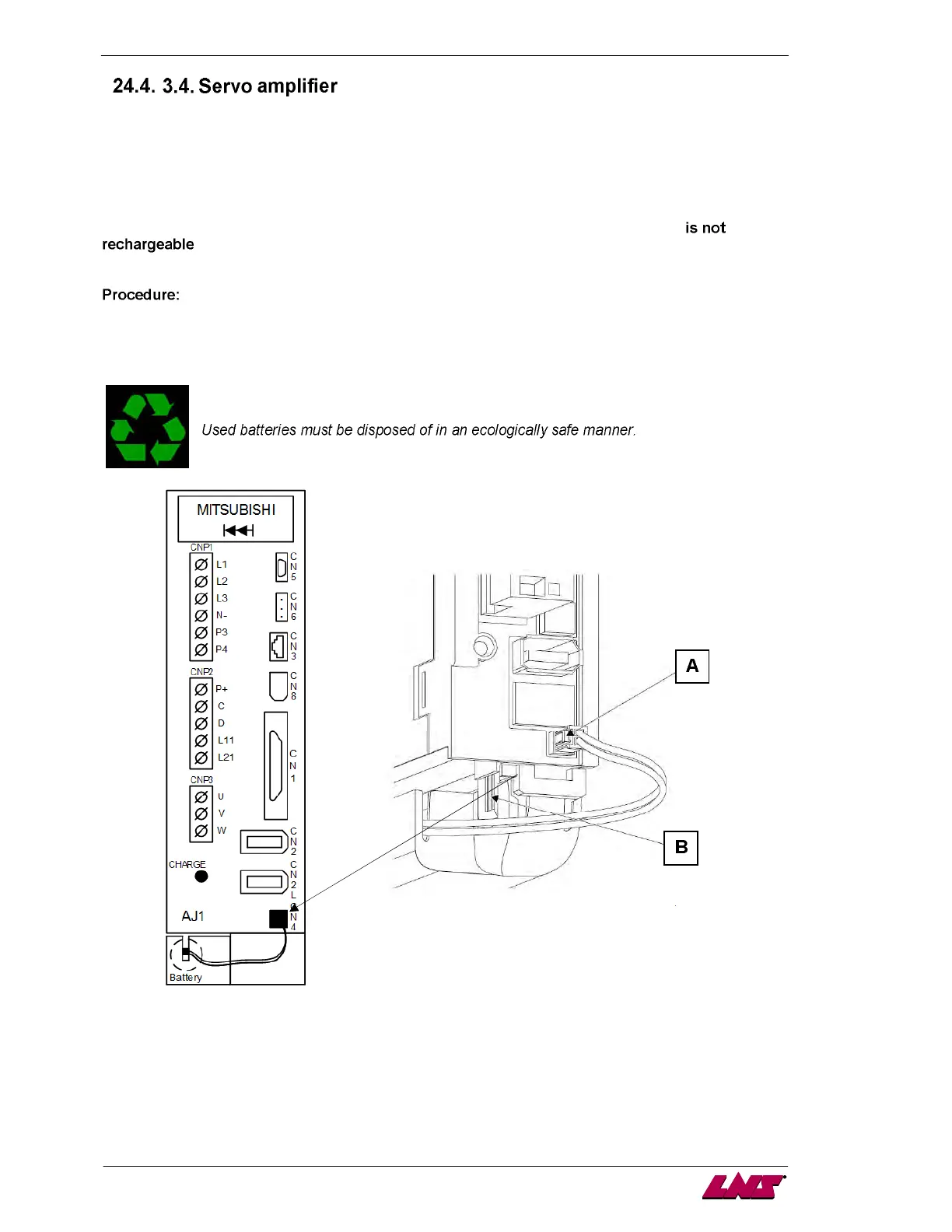 2. Open the battery compartment (B) according to the procedure below.
