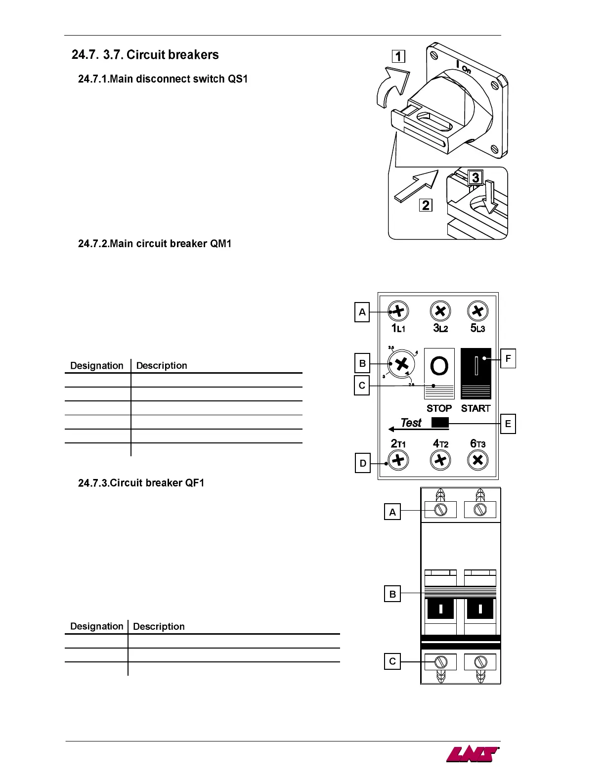 Circuit breaker QM1 interrupts the phases which power the hydraulic motor.