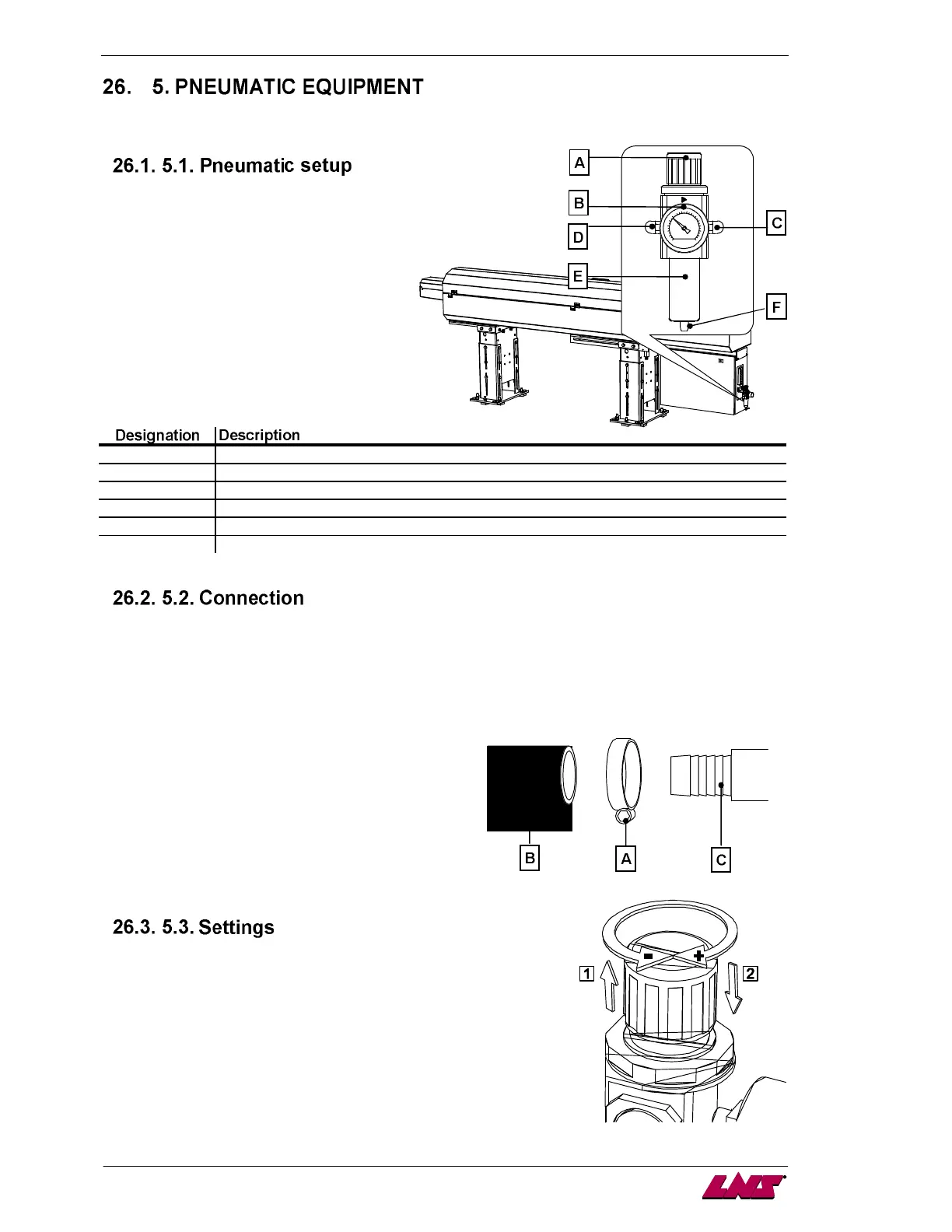 The pneumatic connection (C) is located behind the control cabinet.