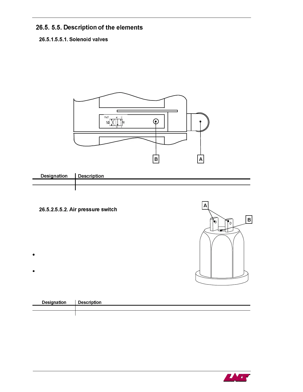 By pressing a key (B), the pneumatic cylinders can be activated manually. This function may prove to be