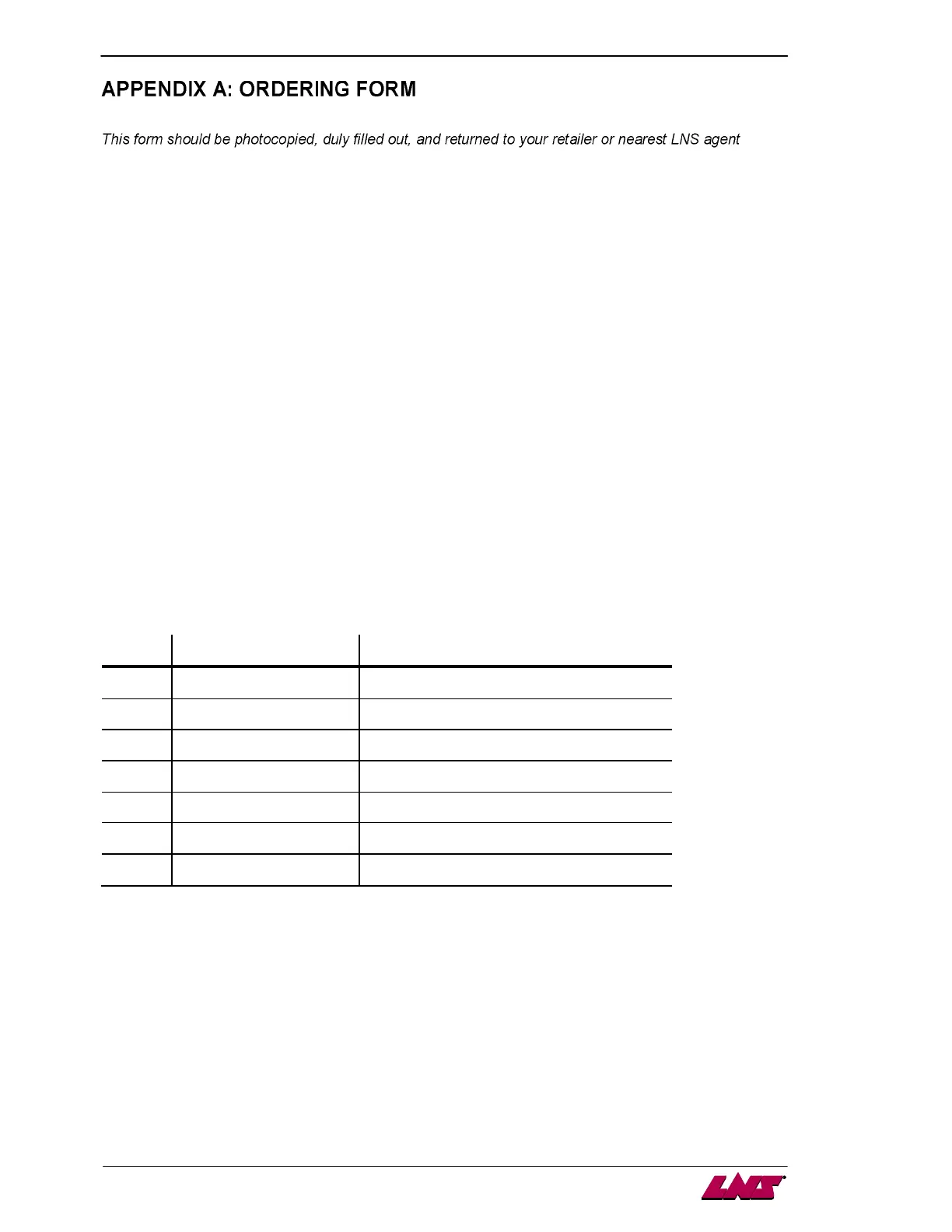 LNS QUICK SIX S2 - APPENDIX A: ORDERING FORM