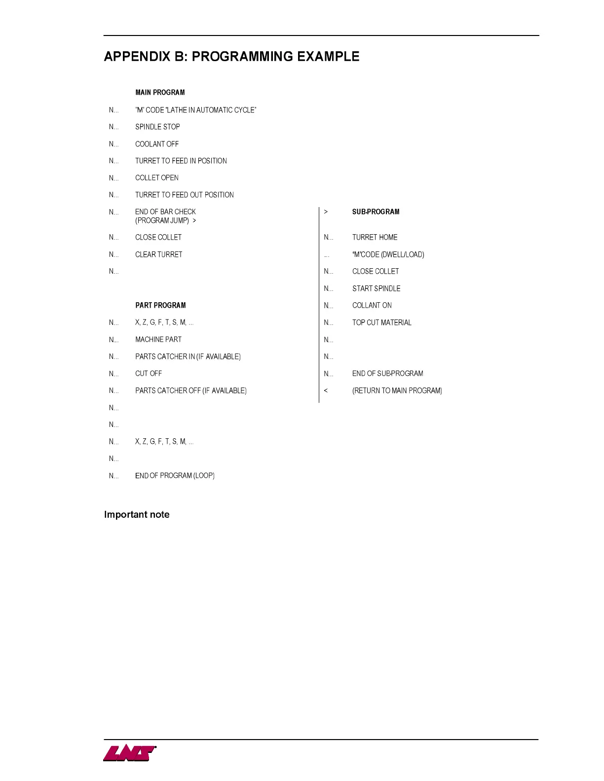 LNS QUICK SIX S2 - APPENDIX B: PROGRAMMING EXAMPLE