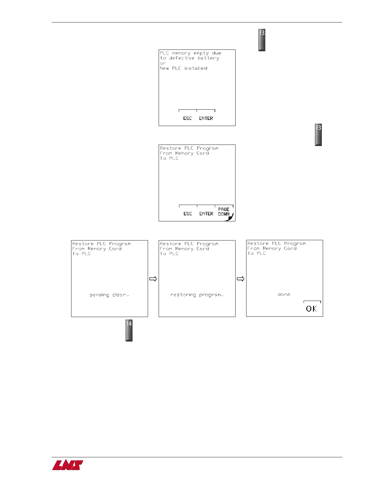 Step 11: Press F3 (ENTER) on the first screen that displays to Restore PLC Program from Memory Card to PLC.