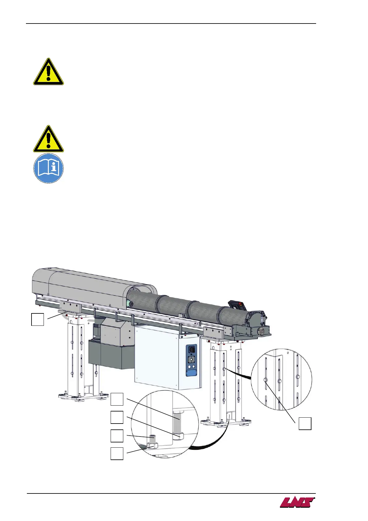 4 safety screws (S) must not be removed until after the bar-feeder has been anchored