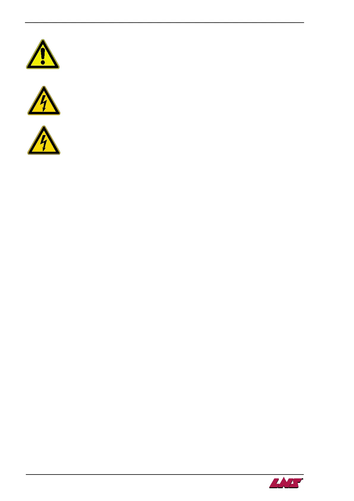 of electrocution. In case of possible electrical malfunctions, it is advisable to contact LNS