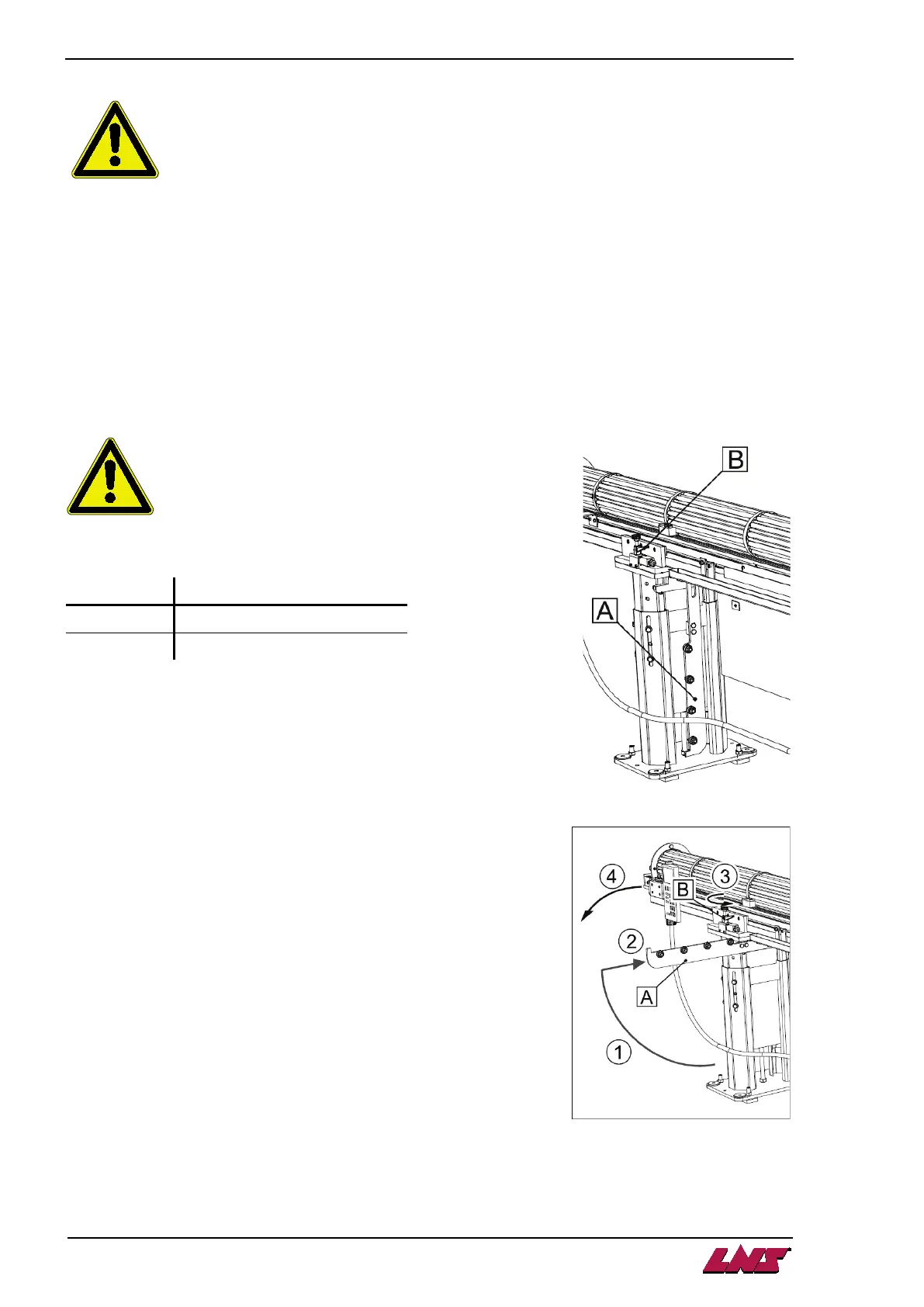 Resecure with the lever (B) then bring the support arm (A) down again.