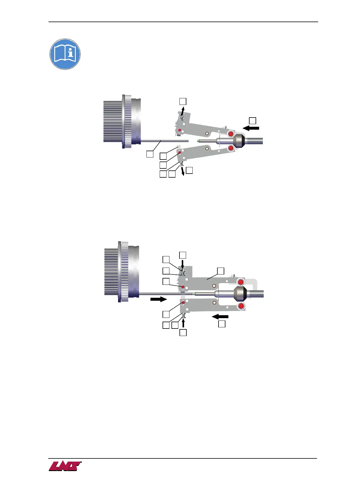 • Draw back (3) the mobile vice (F), until the roller bearings are on the flats of the cam.